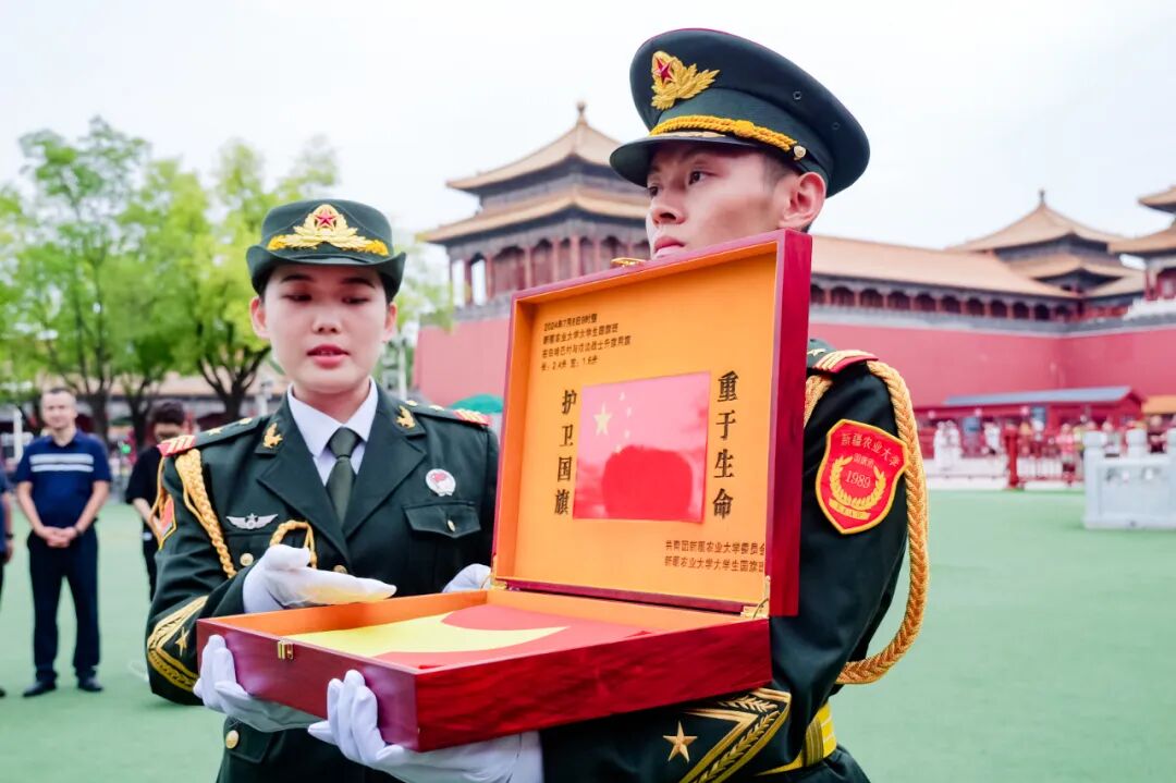 新疆农业大学大学生国旗班成立于1989年,是全国高校中最早成立的一批大学生国旗班之一。这支由各民族学生组成的队伍已走过36个春秋,600余名队员接力传承,将爱国主义精神与民族团结情怀融入每一次升旗、训练和实践,累计完成升国旗仪式7000余次,他们走进南北疆普及国旗知识,协助组建 “乡村国旗班”,开设“国旗下的民族团结课”,累计覆盖群众5万余人次。