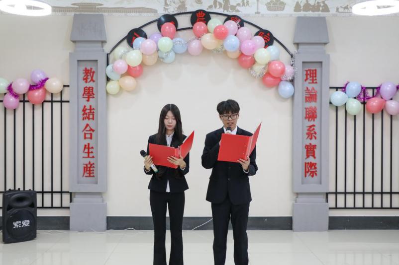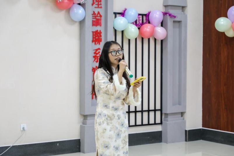 活动伊始,主持人楚晨俐、王得湫硕活力登场,向到场师生致以诚挚的冬日问候,并隆重介绍了莅临本次活动的嘉宾——食品科学与药学学院党委书记姚剑英老师,党委副书记、院长杨晓君老师,党委副书记、纪委书记黄铁军老师,副院长杨继红老师。老师们的倾情支持,让这场传统文化盛宴更添分量,现场响起热烈掌声,为活动拉了开精彩序幕。