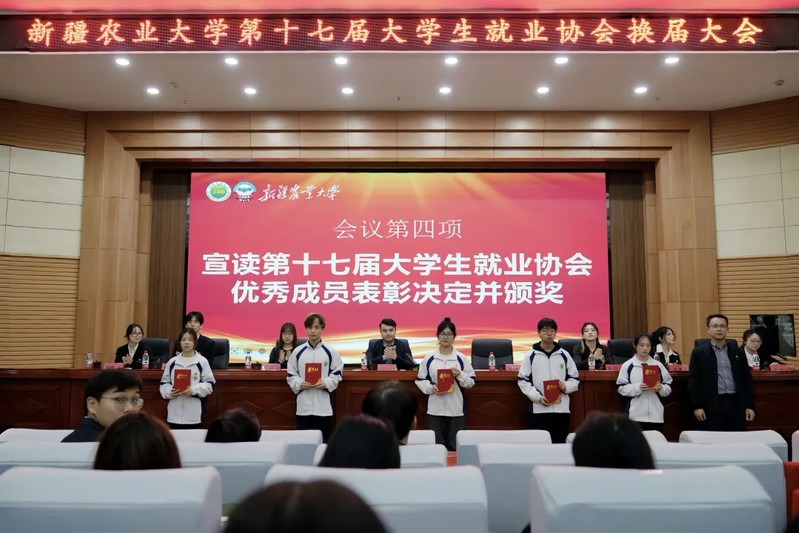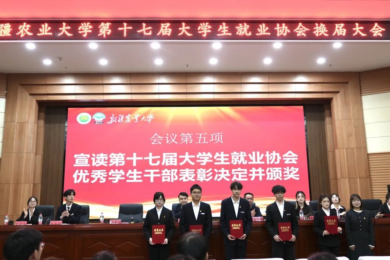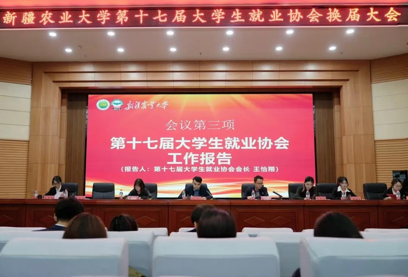 为进一步加强大学生就业协会的组织建设,推动协会工作持续发展,总结过去一年的成果并展望未来规划。2025年12月23日晚,新疆农业大学大学生就业协会第十七届换届大会在八一礼堂学术报告厅举行。参加本次会议的有校就业指导中心副主任阿尔法特·阿布力孜、王若愚老师与校团委蒋明雪老师以及校级学生组织负责人、大学生就业协会全体成员等。