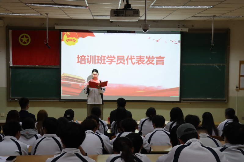 开班仪式在庄严的国歌声中正式拉开帷幕。主持人首先介绍了出席本次仪式的嘉宾,对各位老师与学员的到来表示热烈欢迎与诚挚感谢。随后,培训班学员代表艾丽皮热·艾克拜尔同学上台发言,她分享了自己对共青团的深刻认识与入团初心,表达了全体新疆农业大学学子认真学习团课、积极向团组织靠拢、以实际行动践行青年担当的坚定决心,展现出新时代青年蓬勃向上的精神风貌。