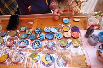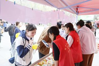 4月12日正午,明德广场的集市浸在春日暖阳里,志愿者们早已将这里打造成一片自然的小天地。原木片带着森林的气息静静铺展,水彩与漆画工具整齐摆放,环保颜料在阳光下漾出温柔的色彩。他们蹲身擦拭桌角的尘,俯身对齐工具的边,把每一个细节都打理妥帖,只为等一场与绿意的邂逅。