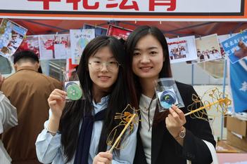 日头渐斜,广场上的热度却未减半分。长桌成了展示绿意的画廊,年轮上的彩绘各有乾坤:澄澈的湖面映着雪山,灵动的小鱼游过清澈的溪流,还有的干脆把自己的环保心愿写在木纹里。路过的师生慢下脚步,指尖轻轻划过木片的纹理,眼里满是赞许:“原来环保也能这么有意思,玩着就把知识记下了。”