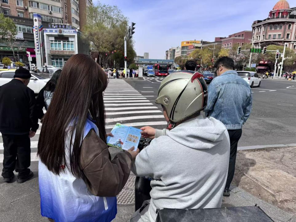 文明交通,志愿同行。4月15日,乌鲁木齐市公安局交通管理支队水磨沟区大队联合新疆农业大学交通与物流工程学院志愿者协会,在腾飞大厦路口开展文明交通劝导宣传活动。志愿者们准时集结,在交警专业指导下熟悉劝导规范、明确岗位职责,迅速投入秩序维护与文明引导工作,以青春力量守护城市道路平安畅通。